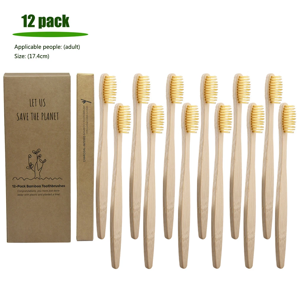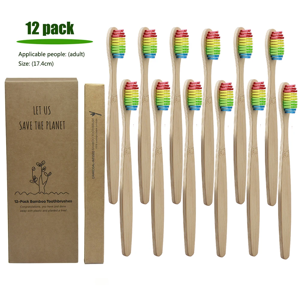 Expensive 12pcs Natural Bamboo Handle hard Toothbrush Oral Care Eco-friendly Tooth Teeth Rainbow Bristles Bru